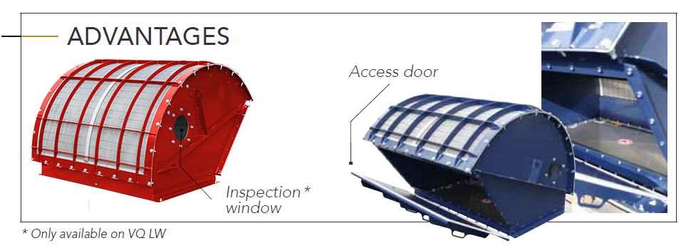 Dust is contained within the VQ, and explosion gases are vented through the device into the external atmosphere around the unit.